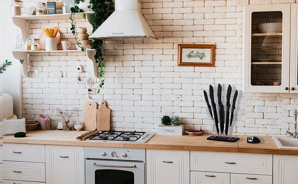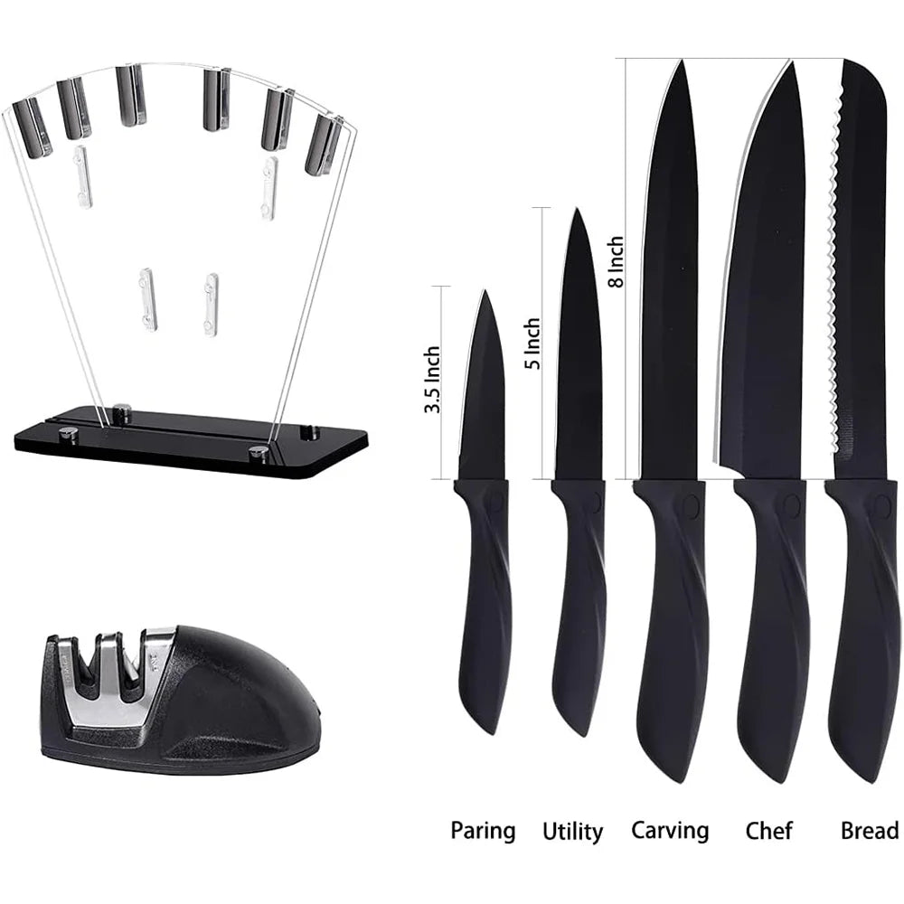 Kitchen knife 7-piece set, black professional stainless steel chef's knife with holder set home rust-proof and sharp meat cutter